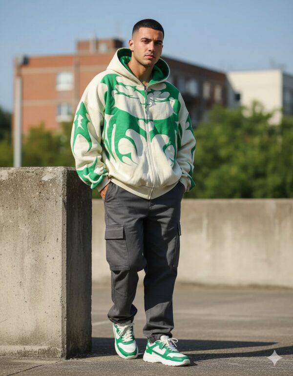 With its drop-shoulder cut, ribbed cuffs, and smooth inner lining, it’s not just a hoodie — it’s a vibe. Pair it with cargos, joggers, or sneakers for the perfect off-duty look.
